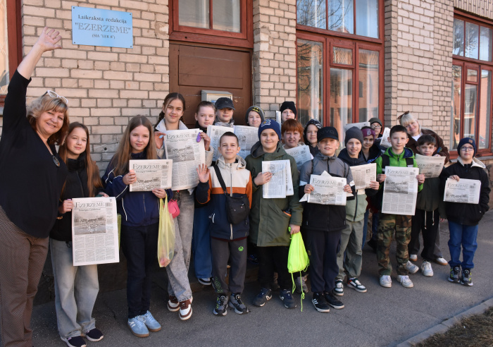Pirms Lieldienām, Zaļajā ceturtdienā laikraksta “Ezerzeme” redakcijā viesojās Krāslavas ģimnāzijas 4. b klases skolēni un skolotāja Edīte Kuriloviča. Iepazīšanās notika jau ārpusē. Laikraksta izdevēja - uzņēmuma SIA “LER 8” valdes locekle Iveta Leikuma pastāstīja par redakcijas ēku, laikraksta vēsturi, tirāžas un redakcijas darbinieku skaita maiņu gadu gaitā.