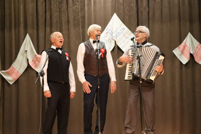 - Šogad Krāslavas novadu pārstāvēja Dagdas baltkrievu dziesmu vokālais ansamblis “Akolicа”, Dagdas senioru biedrības ansambļi - baltkrievu dziesmu ansamblis “Vjarba” un krievu dziesmu ansamblis “Ivuški”. Piedalījās arī “Tautību studija” no Ezerniekiem. Uzstājās harmoniku spēlētājs Pēteris Pleiko-Ižiks no Robežniekiem. Ļoti patīkami, ka pirmo reizi pie mums ieradās Krāslavas poļu biedrības deju kolektīvs “Strumeņ”.