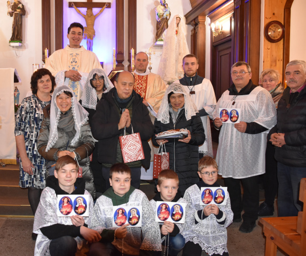 Svētdienas mesas īpatnība bija tāda, ka dievkalpojums norisinājās pēc mainītas kārtības. Vispirms baznīcā ienesa statuju, pēc tam misionāri no Portugāles pastāstīja par tās nozīmi un ceļojumu. Pieciem misionāriem, kas pavada relikviju pa visu pasauli, pasniedza nelielus suvenīrus ar pilsētas un pils fotogrāfijām. Jau nākamajā dienā viesi devās tālāk - vispirms uz Jaunborni, bet pēc tam uz citām draudzēm. Pēc tam viņu ceļš turpināsies pa Eiropu.