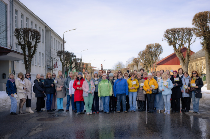 Karodziņiem rokās, sieviešu grupa devās ceļā kopā ar Krāslavas muzeja galveno krājumu glabātāju Allu Lomanovsku, kura pastaigas pieturas punktos pastāstīja par ievērojamām vietām, ēkām un ievērības cienīgiem novadniekiem. Pārgājiena maršruts veda pa Krāslavu aptuveni 5 km garumā. Diena bija brīnišķīga, spīdēja saulīte un pasākuma norise raisīja pozitīvas emocijas. Daži autovadītāji sveica sievietes svētkos ar skaņu signāliem.