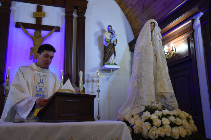 Svētdienas mesas īpatnība bija tāda, ka dievkalpojums norisinājās pēc mainītas kārtības. Vispirms baznīcā ienesa statuju, pēc tam misionāri no Portugāles pastāstīja par tās nozīmi un ceļojumu. Pieciem misionāriem, kas pavada relikviju pa visu pasauli, pasniedza nelielus suvenīrus ar pilsētas un pils fotogrāfijām. Jau nākamajā dienā viesi devās tālāk - vispirms uz Jaunborni, bet pēc tam uz citām draudzēm. Pēc tam viņu ceļš turpināsies pa Eiropu.