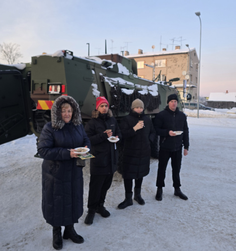 Sadarbībā ar Zemessardzes 35.kājnieku bataljonu Dagdas Kultūras centra pagalmā tika organizēta armijas tehnikas, ieroču un ekipējuma izstāde. Tās laikā apmeklētājiem bija iespēja tuvāk iepazīt Zemessardzes tehniku un aprīkojumu, uzzināt vairāk par zemessargu ikdienas uzdevumiem un dienestu. Īpašu interesi raisīja mobilā ēdiena pagatavošanas iekārta, kas noteiktos apstākļos tiek izmantota zemessargu ēdināšanai militāro operāciju laikā. Šoreiz armijas lauka virtuve piedāvāja pasākuma dalībniekiem nobaudīt siltu un garšīgu maltīti. Tas radīja ne vien praktisku, bet arī simbolisku saikni ar barikāžu laiku, kad kopā būšana un savstarpējs atbalsts bija īpaši nozīmīgs.