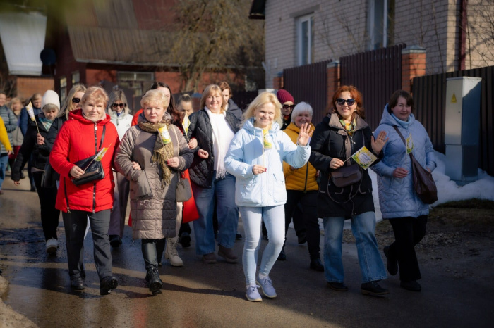 Karodziņiem rokās, sieviešu grupa devās ceļā kopā ar Krāslavas muzeja galveno krājumu glabātāju Allu Lomanovsku, kura pastaigas pieturas punktos pastāstīja par ievērojamām vietām, ēkām un ievērības cienīgiem novadniekiem. Pārgājiena maršruts veda pa Krāslavu aptuveni 5 km garumā. Diena bija brīnišķīga, spīdēja saulīte un pasākuma norise raisīja pozitīvas emocijas. Daži autovadītāji sveica sievietes svētkos ar skaņu signāliem.