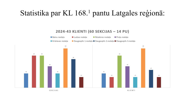 Kā norādīja apakšpadomes vadītāja un sanāksmes dalībnieki, organizējot soda izpildi personām, kuras ir notiesātas par Krimināllikumā 168.1 pantā paredzētā noziedzīgā nodarījuma izdarīšanu, tiek organizētas starpinstitūciju sadarbības sanāksmes – tā ir izveidojusies kā labā prakse Valsts probācijas dienestā, ko aizsāka Latgales reģions - tika organizēta starpinstitūciju sadarbība sanāksme par probācijas klientu, kurš vairākkārt tika sodīts pēc Krimināllikuma 168.1 panta. Latgales reģionā 2024. gadā tika organizēta 31 starpinstitūciju sadarbības sanāksme. Starpinstitūciju sadarbības sanāksmes laikā tiek pārrunāti probācijas klientam konstatētie riski, kopīgi tiek pieņemts lēmums par nodrošināmajiem pasākumiem ar mērķi mazināt risku, ka probācijas klients (notiesātais) izdara jaunu noziedzīgu nodarījumu; starpinstitūciju sadarbības sanāksmes laikā ņemtas vērā cietušā intereses un pārrunāti atbalsta pasākumi klienta ģimenes locekļiem.