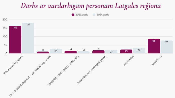 Tāpat tika apskatīta arī statistika, kas liecina par reģistrēto vardarbības gadījumu pieaugumu Latgales reģionā. Tika uzsvērts, ka šis pieaugums ir saistīts ne vien ar vardarbības gadījumu skaita palielināšanos, bet arī ar to, ka upuri biežāk uzdrošinās runāt par šo problēmu un meklēt palīdzību.